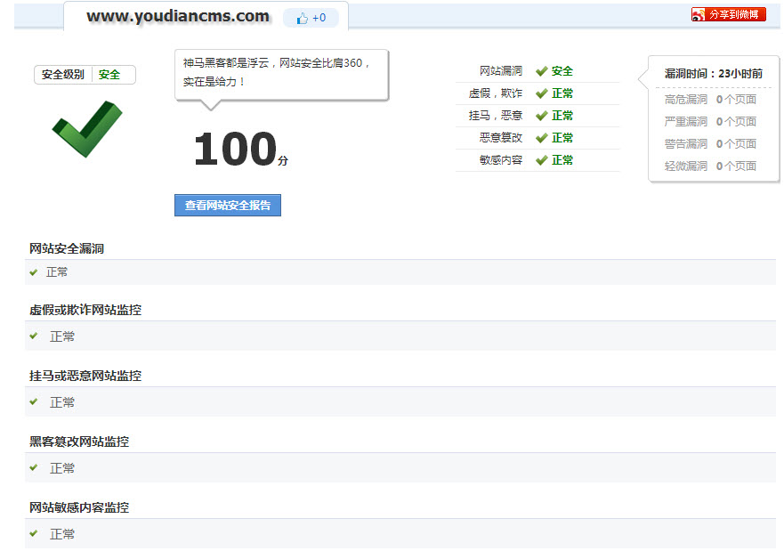 友點企業網站管理系統以滿分通過360網站安全檢測